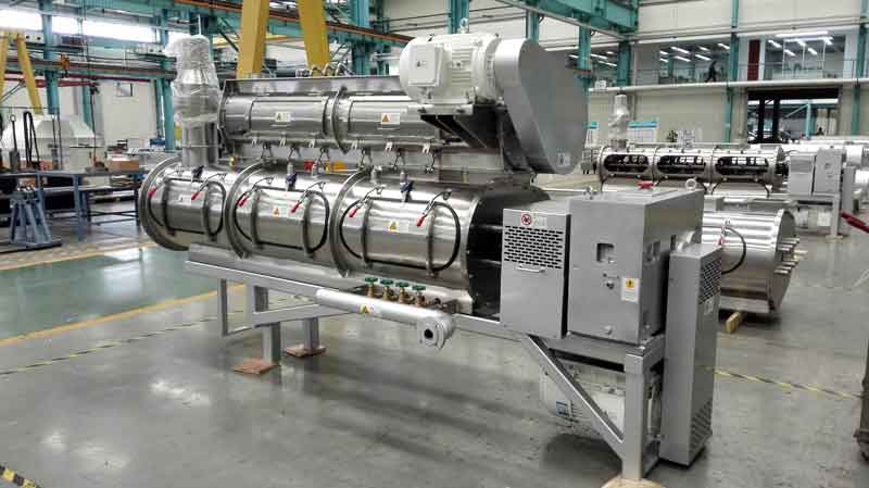 狗糧加工設備JNK200-T5M:1。JNK200-T5M型狗糧加工設備安裝方便、出廠已經(jīng)試機,狗糧機切刀采用直角切刀技術,調試簡單;2。狗糧設備的主軸和切刀小軸均可隨時注入耐高溫潤滑脂,延長狗糧機的軸承使用壽命;3。JNK200-T5M狗糧設備每小時生產狗糧顆粒200公斤。
